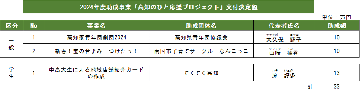 【2025年度助成事業「高知のひと応援プロジェクト」】